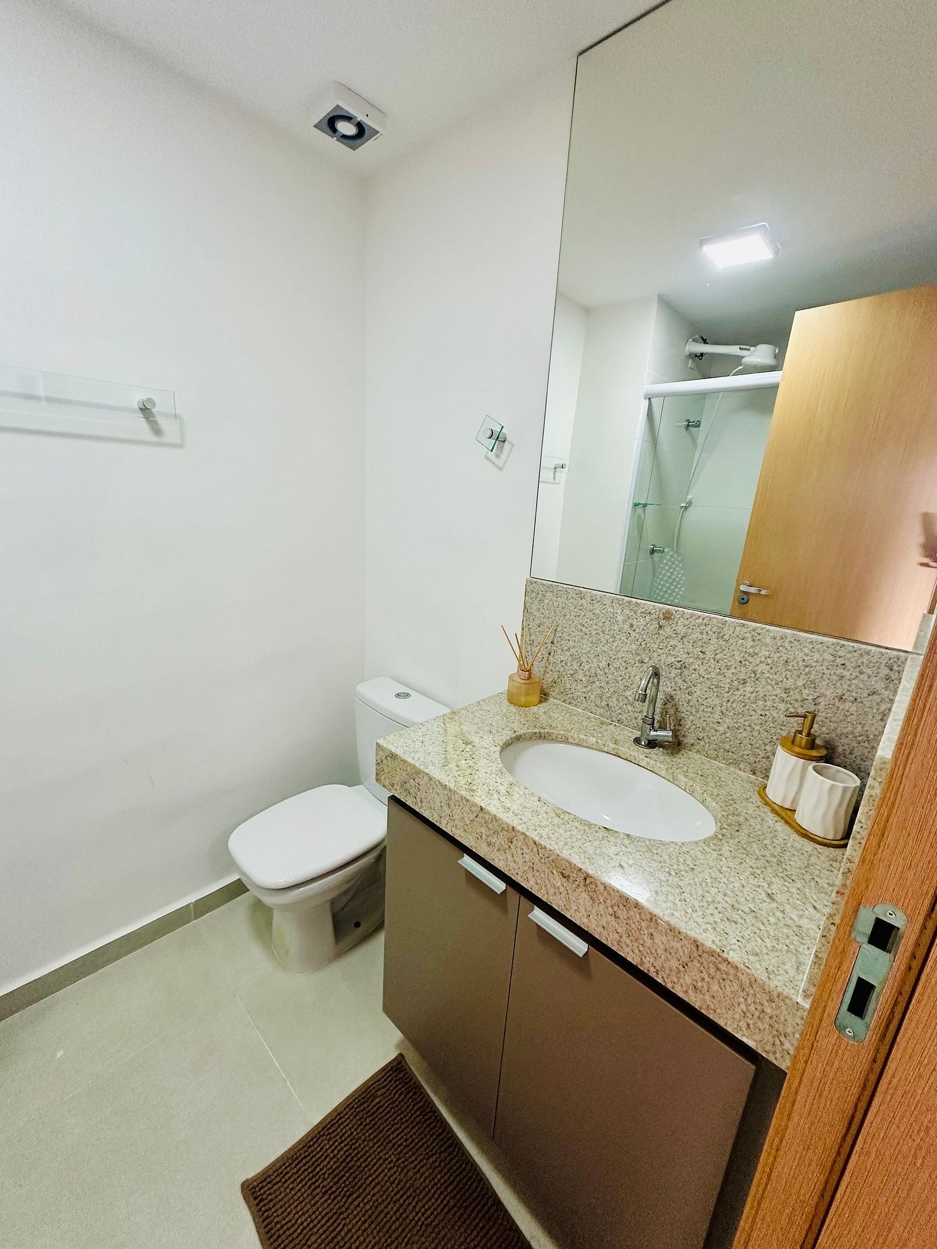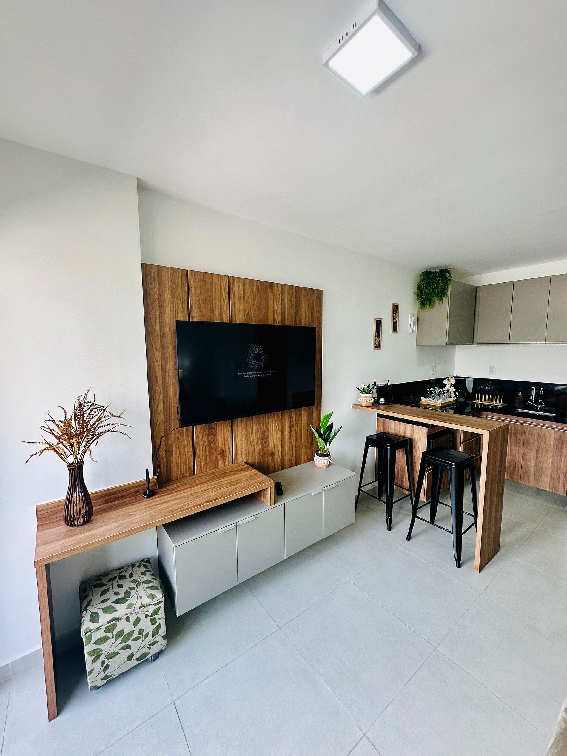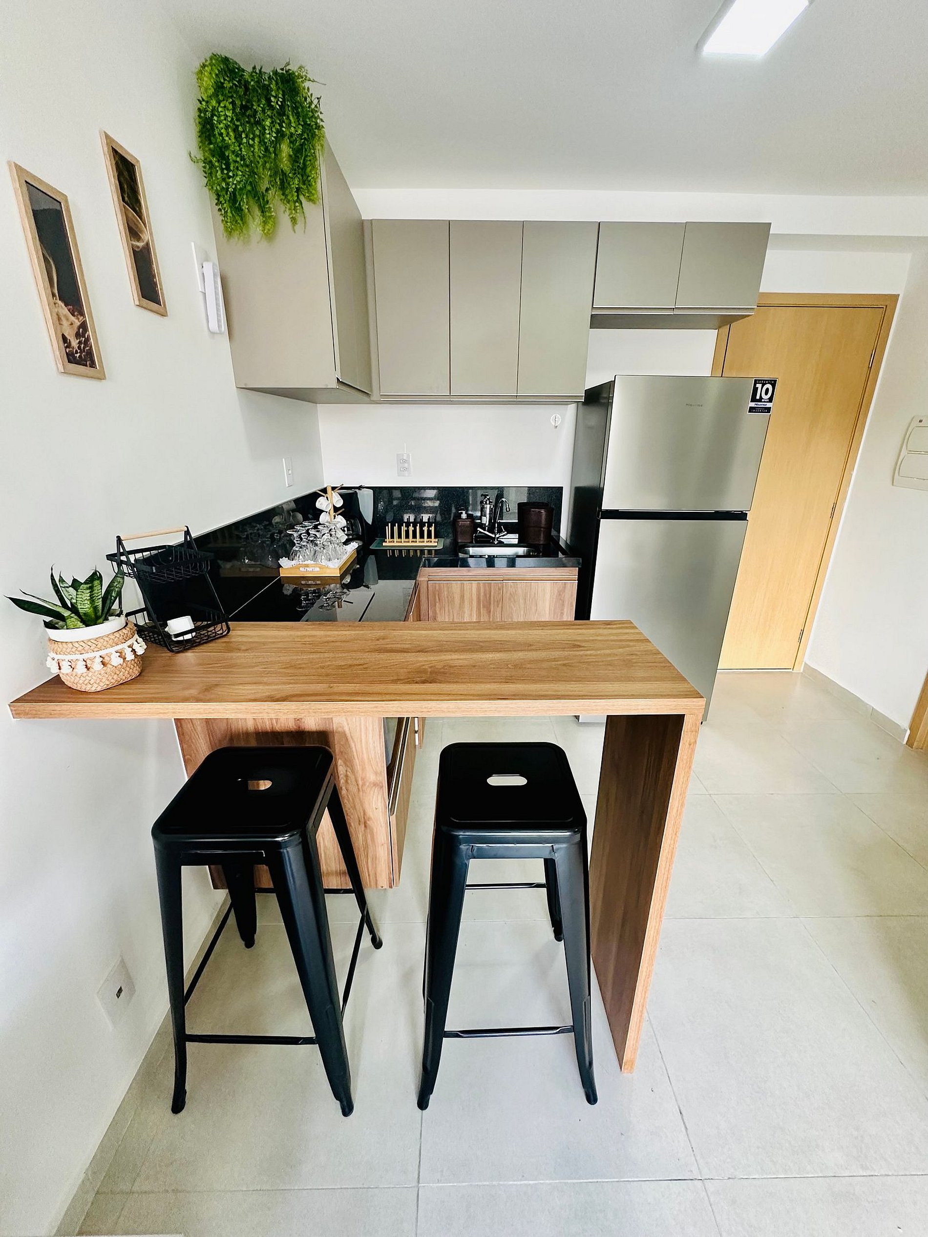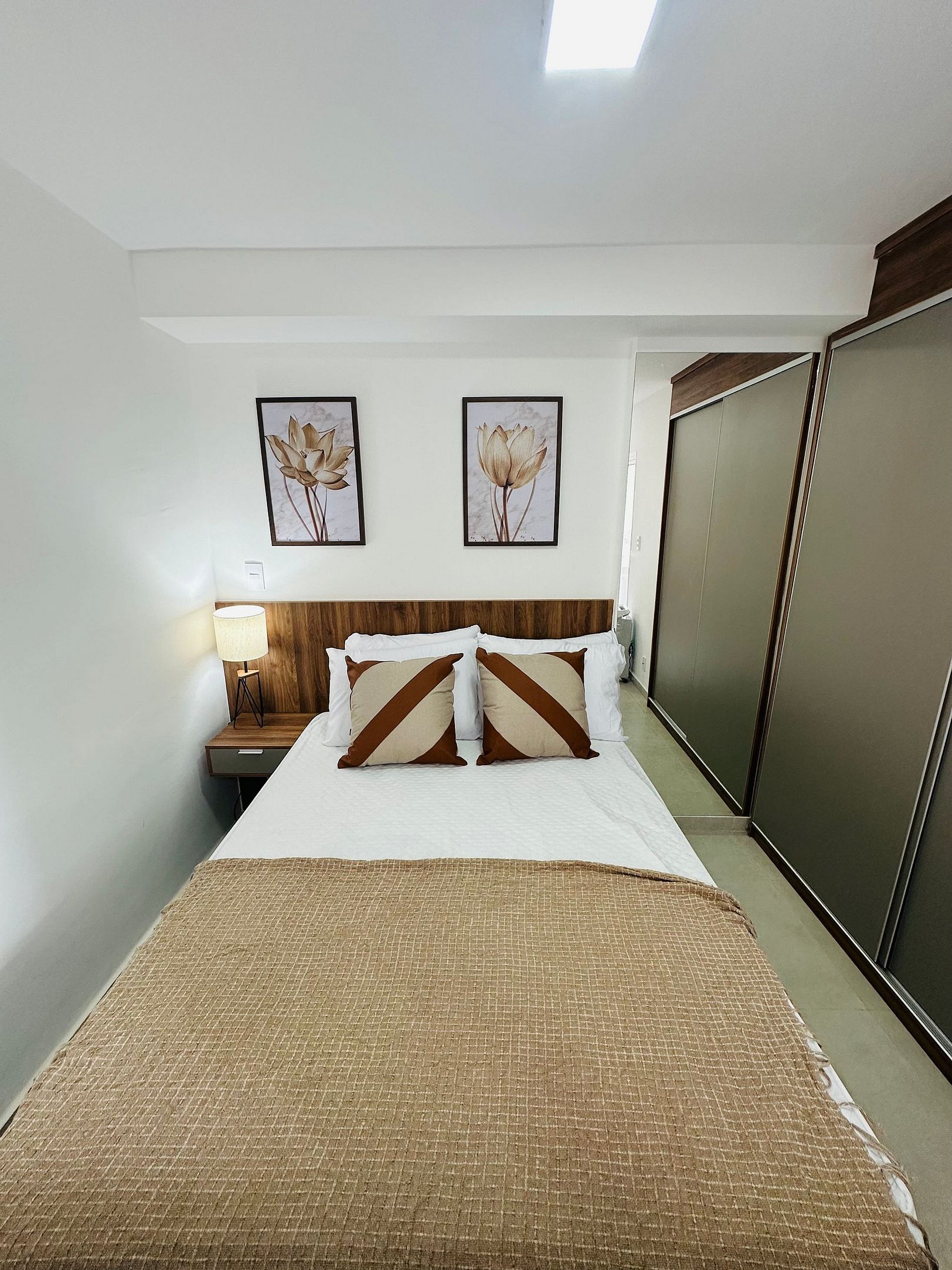 Apartamento novíssimo , cozinha 100% equipada, microondas, cooktop, tv de 46”, colchão confortável, guarda roupas amplo, espelho. Ventilador portátil disponível.